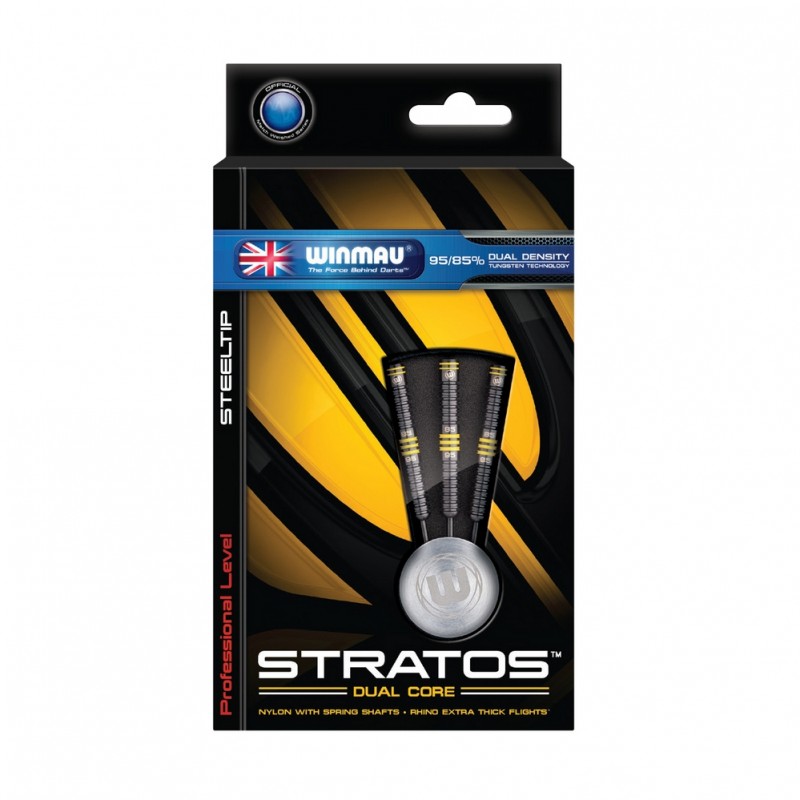 Stratos Dual Core strelice sa metalnim vrhom za klasični (Steel) pikado. Najinovativnija tehnologija u izradi strelica iz engleske fabrike Winmau. Dual Core strelice su izradjene od dve gustine Tungsten-a (Wolframa), gde je prednji deo strelice izradjen od 95%,a zadnji deo 85% Tungsten-a pri čenu dobijaju savršen balans, perfektnu i najidealniju putanju (let) i savršen ugao zabadanja u metu.